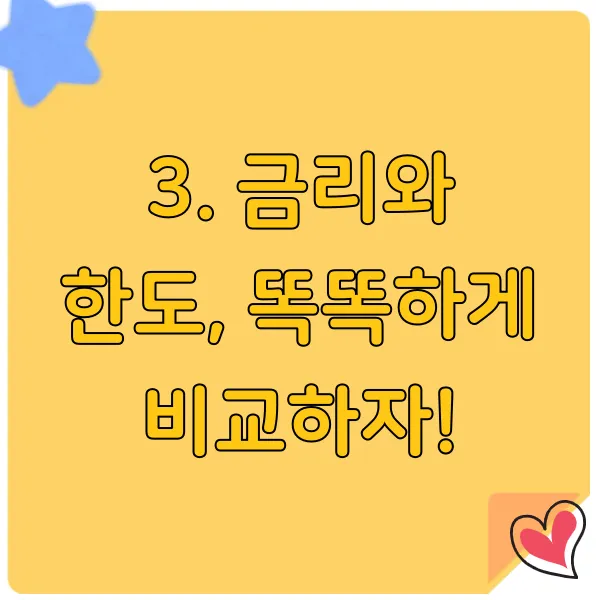 같은 상품이라도 금융기관에 따라 금리, 한도, 우대 조건 등이 다를 수 있습니다. 여러 금융기관의 상품을 꼼꼼하게 비교해보고 가장 유리한 조건을 제시하는 곳을 선택하는 것이 현명합니다.