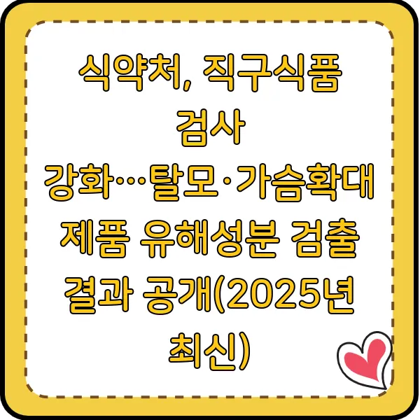 해외 직구 식품 시장이 폭발적으로 성장하면서, 안전성에 대한 우려 또한 높아지고 있습니다. 특히 탈모, 가슴 확대 등 효과를 표방하는 제품에서 유해 성분이 검출되는 사례가 빈번하게 발생하고 있어 소비자들의 각별한 주의가 요구 됩니다. 이에 식품의약품안전처(이하 식약처)는 국민 건강을 보호하기 위해 해외 직구 식품에 대한 검사를 대폭 강화하고, 유해 성분 검출 정보를 투명하게 공개하는 등 적극적인 조치를 취하고 있습니다.